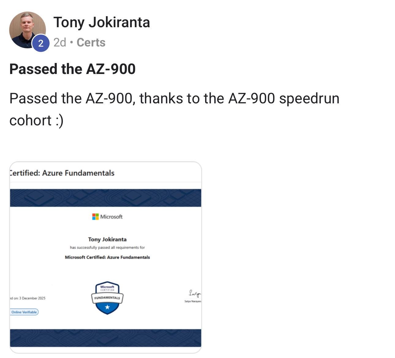 This is straight from our AZ900 Speedrun in our Skool Community that has already helped several get certified, including 2 in the past 2 days!