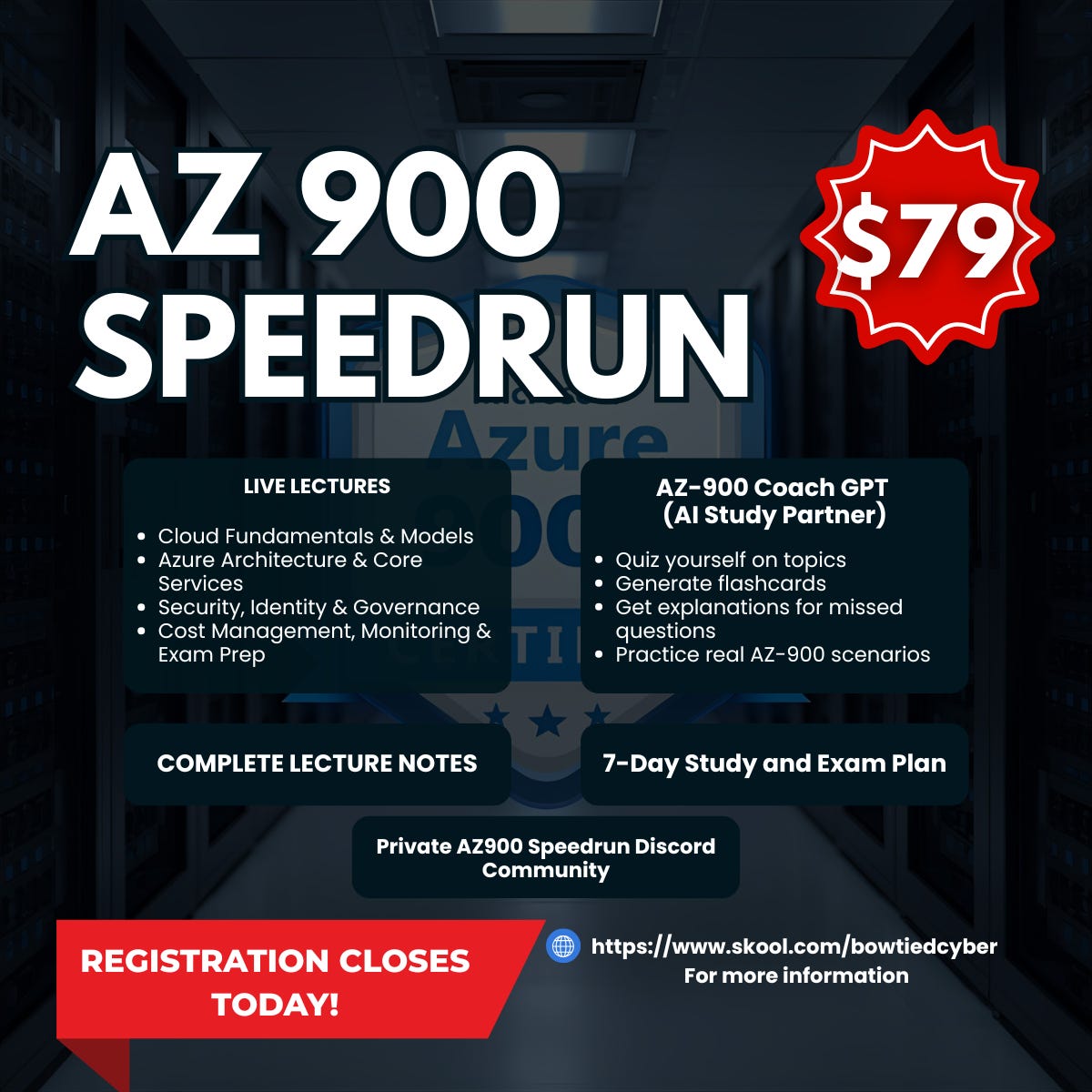 Registration closes today at 11:59 PM EST. The AZ900 Speedrun starts tomorrow.